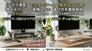 Uncategorized 【デスク激変】モニターアームで机が広くなる!導入メリットと後悔しない選び方を徹底解説