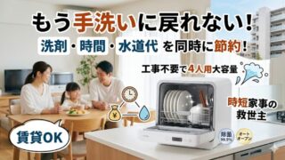 食洗機の導入で「水道代・洗剤・時間」を賢く節約!手洗いよりも節水になる理由や、賃貸でも設置工事なしですぐに使えるSIROCA(シロカ)の人気4人用モデル「SS-LH451-W/W」を詳しく解説。